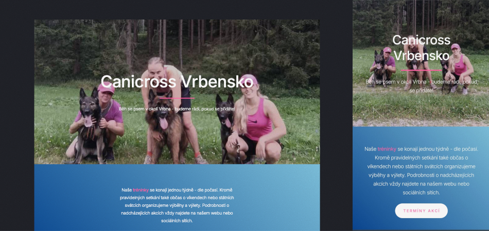Komunitní stránka pro místní sportovní klub zaměřený na canicross.