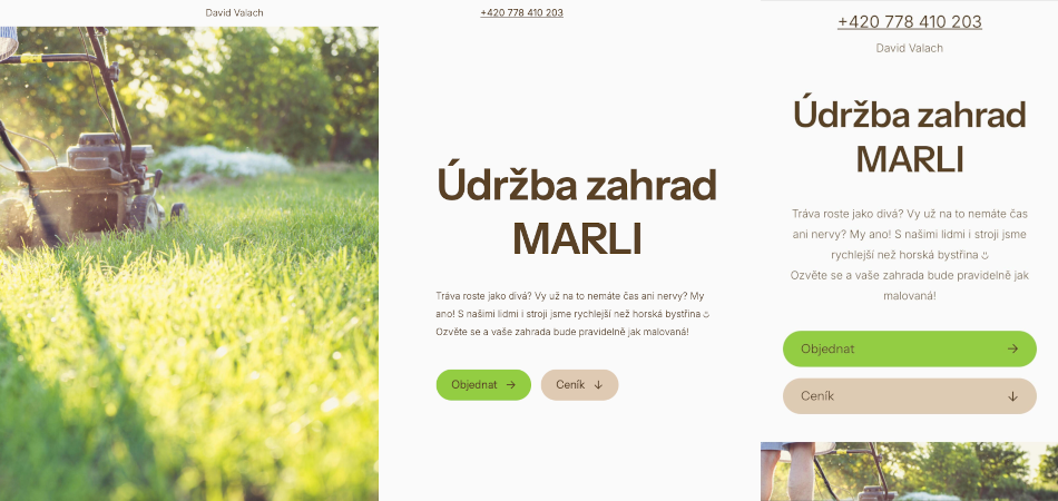 Jednoduchý web pro místní firmu zaměřenou na údržbu zahrad.